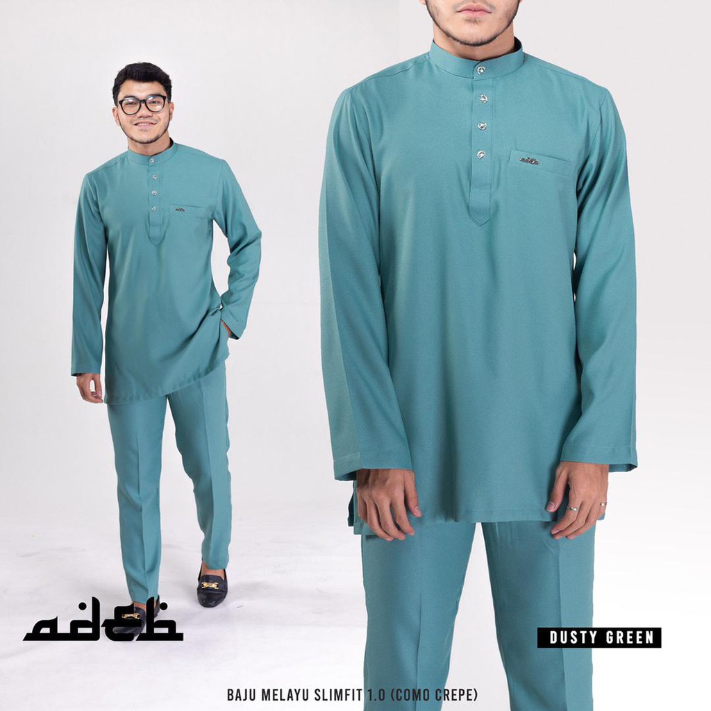 Baju Melayu Como Crepe By Adeb Exclusive Dusty Green Shopee Malaysia